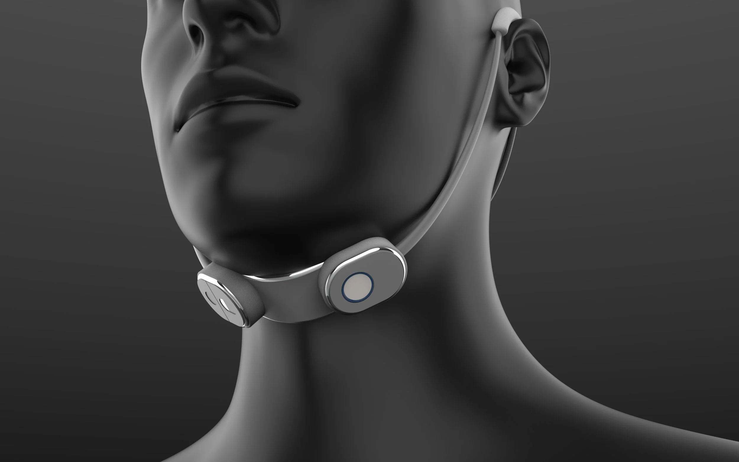 This is done by pressing the device against the neck and sending vibrations through it to mimic the larynx.